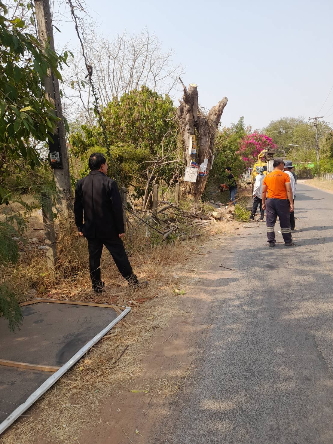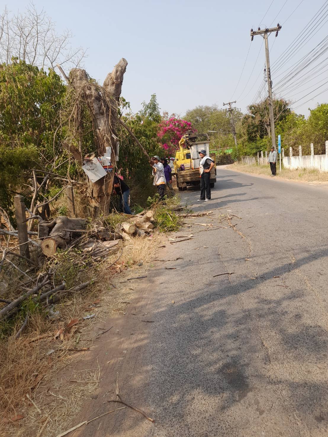 วันที่ 20 กุมภาพันธ์ 2568 เทศบาลตำบลด่านคล้า นำโดย นายบรรยง ไม้กลาง นายกเทศมนตรี มอบหมายให้ ทีมงานป้องกันฯ และกองช่างเทศบาลตำบลด่านคล้า ดำเนินการออกตัดต้นไม้ที่ตายแล้วผุกร่อนอยู่ในเขตไหล่ทาง ซึ่งอาจจะล้มทับหรือล้มขวางทางผู้ที่ใช้เส้นทางและอาจทำให้เกิดอุบัติเหตุได้