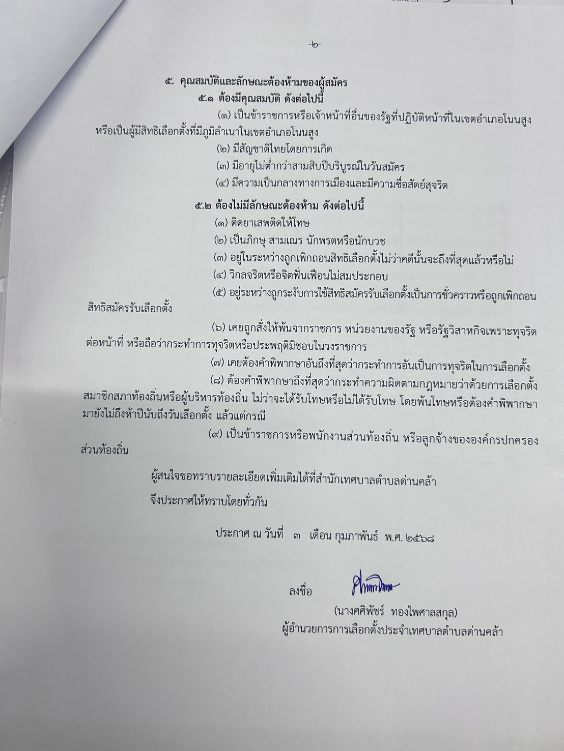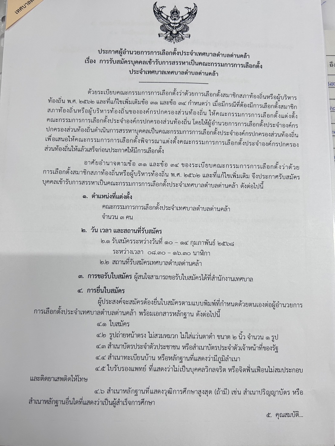 ประกาศรับสมัครบุคคลเข้ารับการสรรหาเป็นคณะกรรมการการเลือกตั้งประจำเทศบาลตำบลด่านคล้า