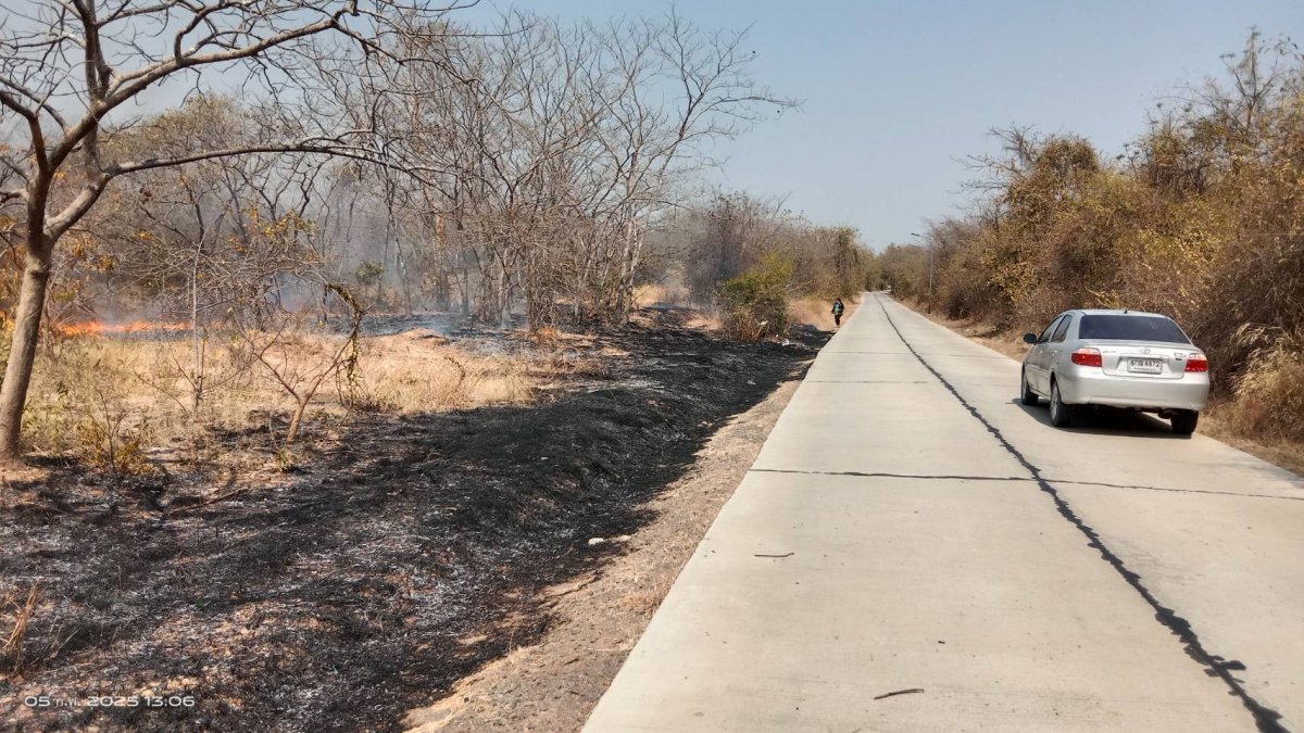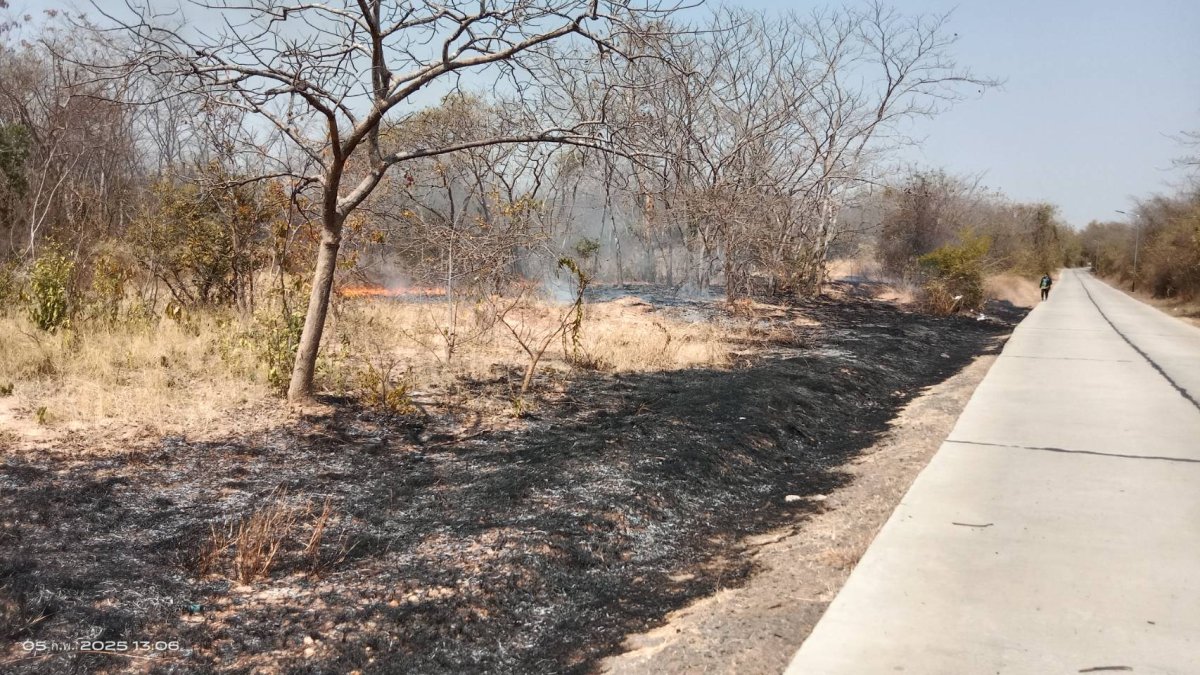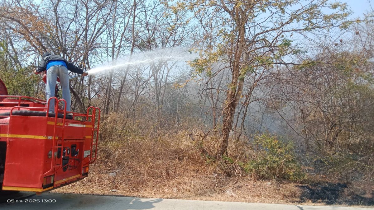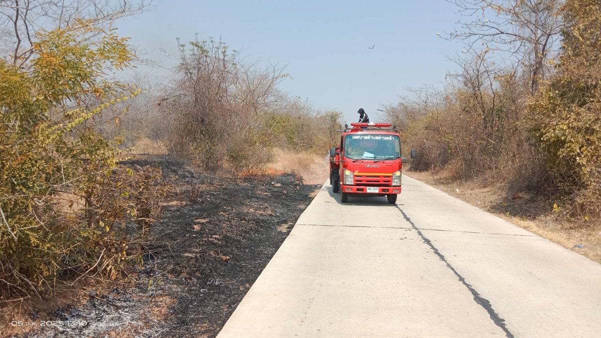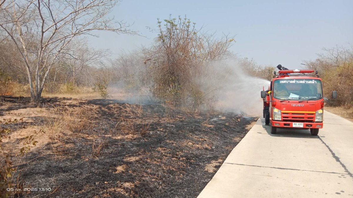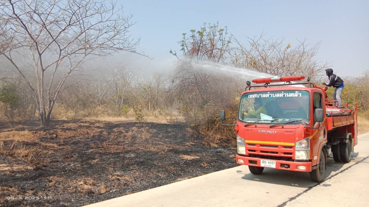 เจ้าหน้าที่งานป้องกันและบรรเทาสาธารณภัย เทศบาลตำบลด่านคล้า ออกระงับเหตุเพลิงไหม้บริเวณที่สาธารณะประโยชน์ บ้านโคกเกริ่นร่มเย็น หมู่ 13